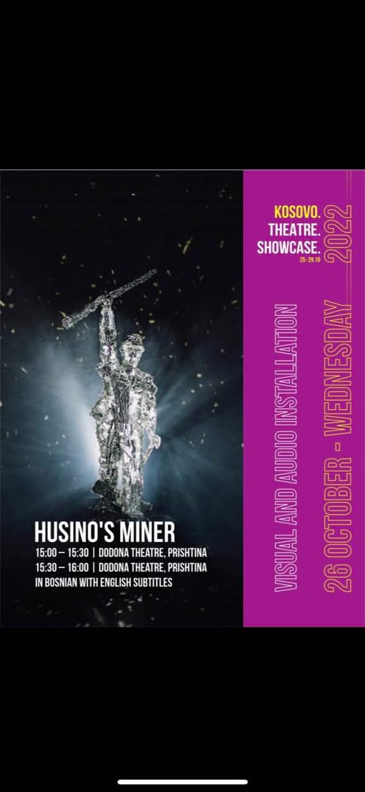 će sutra 26.10.2022. godine u sklopu međunarodne smotre KOSOVO THEATRE SHOWCASE 2022 u Prištini predstaviti se publici sa dvije izvedbe performasa “Husinski rudar: Moja prošlost je vaša budućnost” autora Branka Šimića.