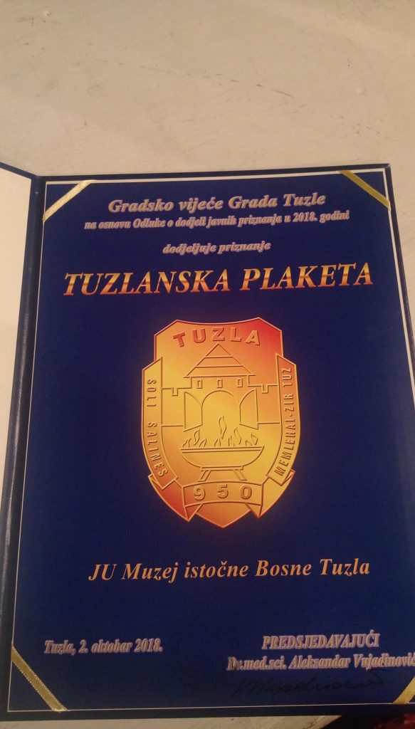 Nasa ustanova dobila je vazno priznanje od Grada Tuzla, cime je priznat doprinos u oblasti promocije i zastite kulturno-istorijskog nasljedja koje se u Muzeju cuva vec 71 godinu.